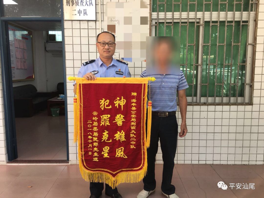 日前,家住汕尾市海丰县的陈女士接到不法分子冒充公检法人员的诈骗电话,差点被骗走200万余元。幸好当时海丰县公安局紧急采取措施进行劝阻,才避免陈女士遭受巨额损失。10月3日,陈女士家人向该局送来写有“神警雄风犯罪克星”字样的锦旗。