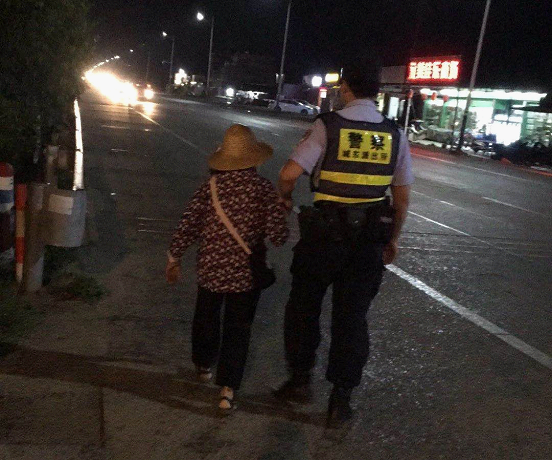 5月2日晚19时多,城东派出所巡逻队在324国道城东镇圆墩村委路段巡逻时,发现一老人在附近徘徊,此时夜晚天黑,国道上车辆川流不息,极度危险。于是上前向其询问情况,得知该老人名叫卢某(女,73岁,圆墩村委坑畔村人),因与其儿媳发生口角而离家出走闹情绪,经巡逻队员耐心劝解并将老人护送回家,同时对老人家属进行教育。