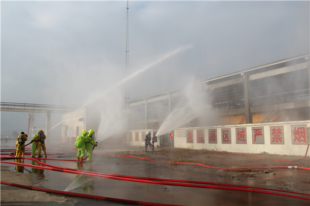 本次联合演练以危险化学品安全事故预警报知、组织指挥和抢险救援为演练重点。演练模拟红海湾发电有限公司工人操作不慎,发生液氨泄漏,演练根据灾情特点设置了侦检、堵漏、救助、断阀、水枪阵地转移等科目。接到警情后,消防支队迅速调集救援力量赶赴现场救援,并向市安委办报告请求启动《汕尾市危险化学品泄漏应急处置预案》,市安委办迅速调集安监、气象、环保、交警、卫计等相关联动到位到场协同处置。本次演练共调集了12辆消防车、1辆供电车、1辆医疗救护车、1辆应急指挥车,70余名消防指战员和社会联动单位人员,整个演练贴近实战,达到了预期效果。