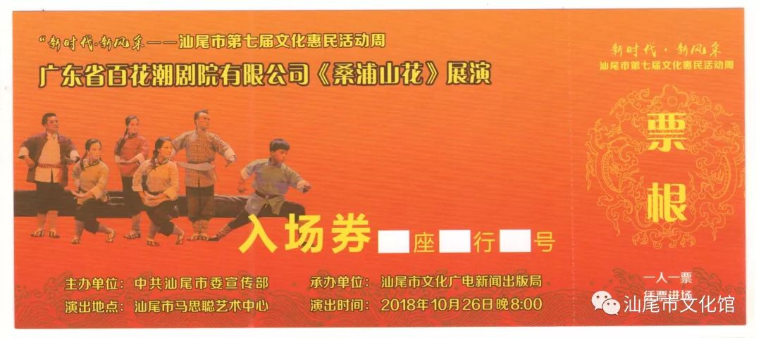 由中共汕尾市委宣传部主办,汕尾市文化广电新闻出版局承办的“新时代•新风采——2018年汕尾市第七届文化惠民活动周”系列活动之一广东省优秀精品剧目展演,于10月26日——10月30日在市马思聪艺术中心举行,为市民奉献精美的文化盛宴。