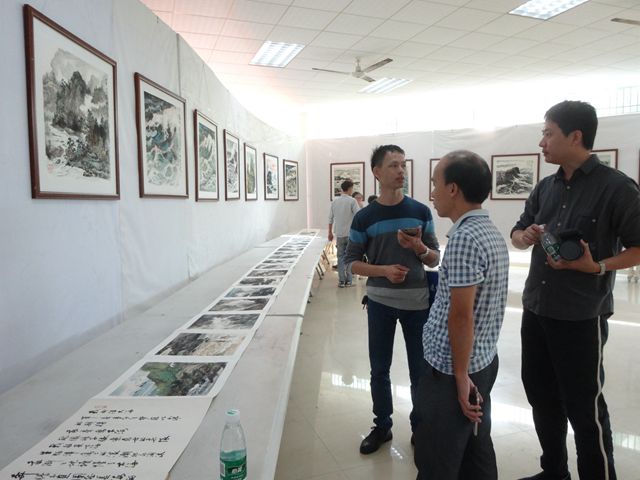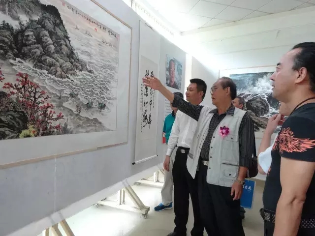 启动仪式结束后,各领导嘉宾共同移步市图书馆一楼展览厅欣赏郑孙堤先生的海洋书画作品,郑孙提先生向大家介绍了部分作品的元素和意境,让观赏者理解到作品更深层次的内涵。