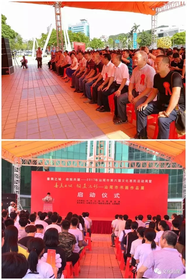 9月13日上午,由汕尾市委宣传部主办,汕尾市文广新局、汕尾市画院承办的“善美之城·你我共建——2017年汕尾市第六届文化惠民活动周”启动仪式暨“善美之城·翰墨流彩——汕尾市书画作品展”在汕尾市图书馆举行,市委常委、宣传部长曾晓佳,市人大常委会副主任黄宏伟,广州美术学院研究生导师马文西教授,广东省文史馆、市直有关单位领导、职业技术学院师生以及艺术界嘉宾300多人参加了本次活动。