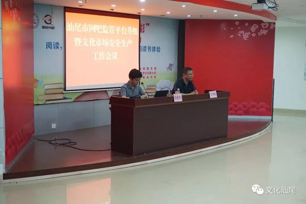 根据广东省文化厅《关于在全省开展网吧监管平台升级工作的通知》(粤文执法〔2018〕2号)的工作部署, 5月30日,汕尾市文广新局组织全市文化市场执法人员和全市网吧业主在市图书馆三楼会议室召开了全市网吧监管平台升级工作会议,全面铺开此项工作。市文化市场综合执法大队负责同志,全市执法人员及全市网吧负责人100多人参加会议。