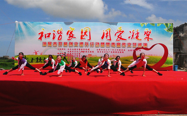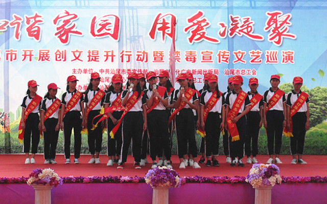 为进一步推进创文创卫工作的深入开展,全面提升市民文化素质和社会文明程度。根据市委电影天堂 工作部署和《汕尾市开展创建文明城市“十大整治”、“十大提升”行动的实施方案》精神,结合电影天堂 禁毒宣传教育工作纵深开展的要求。6月26日,由中共汕尾市委宣传部、汕尾市关心下一代工作委员会、汕尾市文化广电新闻出版局、汕尾市总工会联合主办,汕尾市文化馆承办,汕尾、陆丰关工委驻甲西镇上墩村,汕尾、陆丰文广新局驻甲西镇新饶村,汕尾、陆丰总工会驻甲东镇联湖村等禁毒整治工作组,甲西、甲东镇委、镇政府,上墩村、新饶村、联湖村村委会协办的“和谐家园 用爱凝聚”——汕尾市开展创文提升行动暨禁毒宣传文艺巡演分别在陆丰市甲西镇上墩村、新饶村、甲东镇联湖村举行。