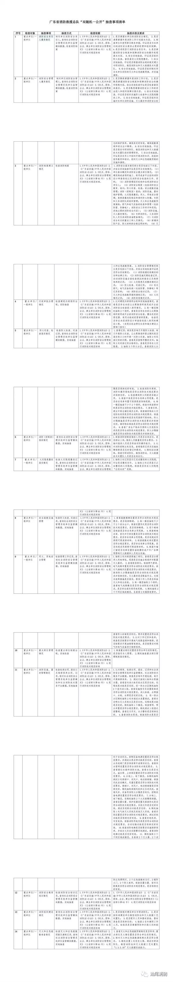 一、抽查时间 2019年12月1日至31日。 二、抽查方式 由所属地消防部门随机指派不少于2名执法人员到现场进行检查,采取询问相关人员、查阅资料、实地测试查看等方式进行检查。 三、抽查内容 见《广东省消防救援总队“双随机、一公开”抽查事项清单》。 四、抽查单位(排名不分先后)