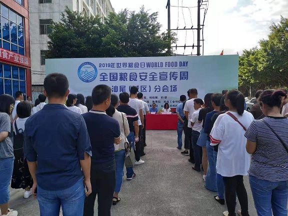 汕尾日报讯 (记者 郑志聪)10月16日,由市发改局、农业农村局、教育局、科技局、妇联主办的2019年世界粮食日和全国粮食安全宣传周汕尾分会场启动仪式在城区举行。活动向市民科普有关粮食安全、存储、质检等相关粮食知识。