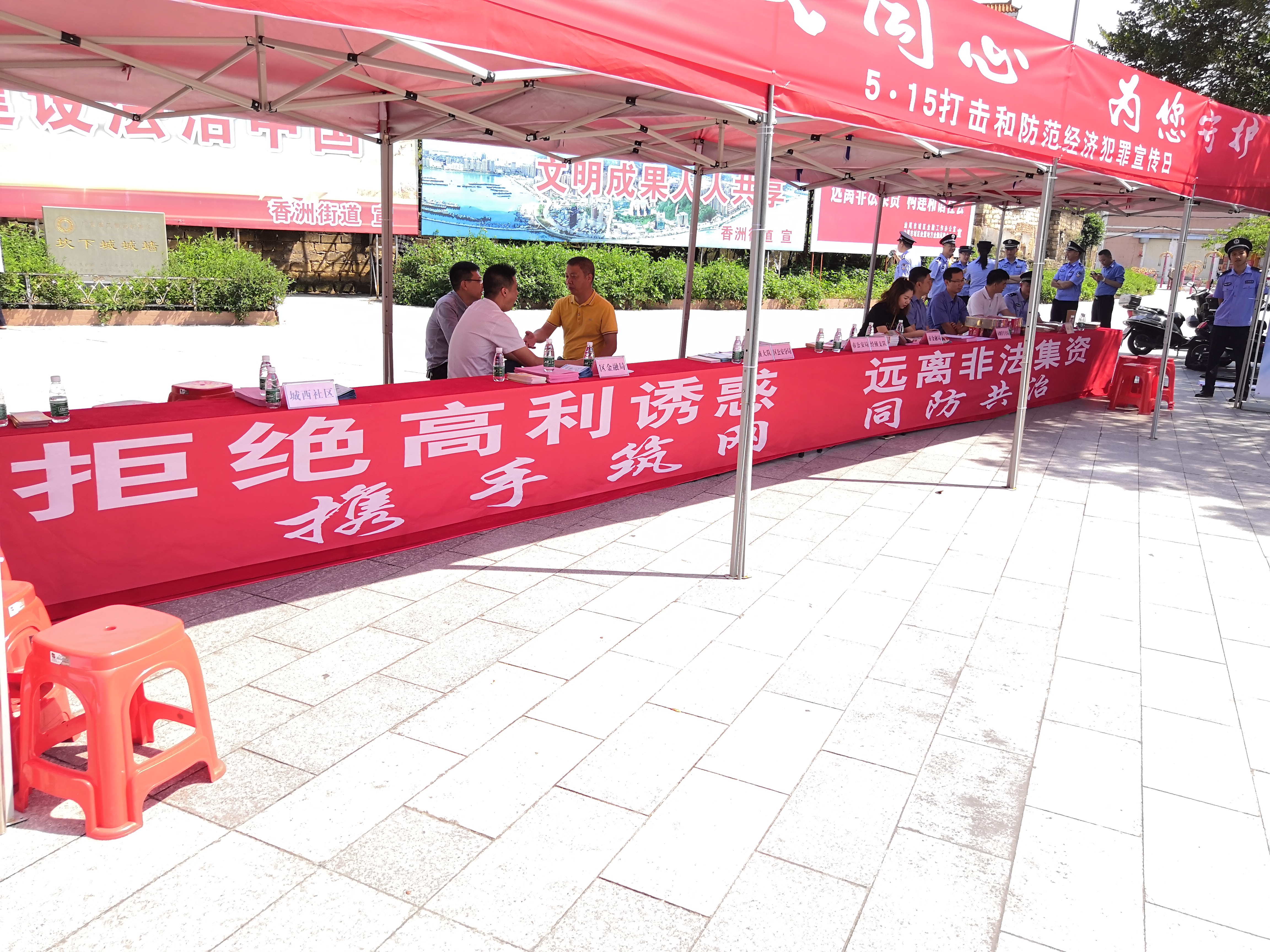 5月12日,市金融局利用公安部门开展打击和防范经济犯罪宣传活动,联合城区金融局积极开展“携手筑网 同防共治”防范非法集资宣传活动。