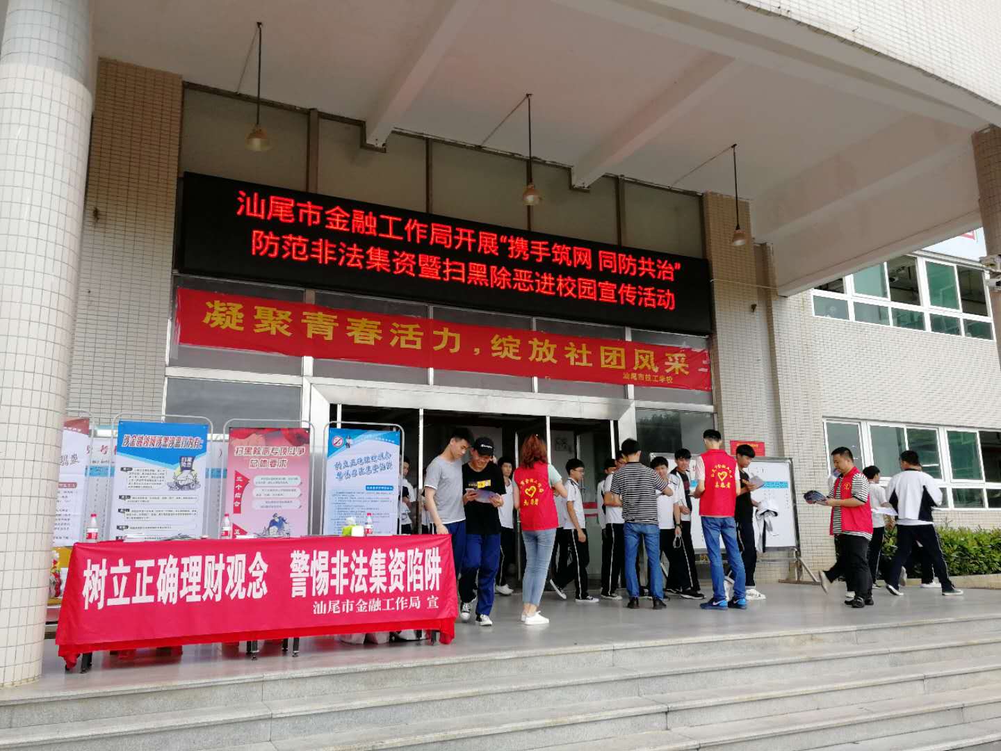 为深入开展防范和处置非法集资宣传活动,进一步打击涉金融领域黑恶势力违法犯罪活动,帮助学生增强自我保护意识,提升学生防范和辨别非法集资的能力,5月20日,汕尾市金融工作局在汕尾市技工学校开展“携手筑网 同防共治”防范非法集资暨扫黑除恶进校园宣传活动,切实把金融知识送给学生。