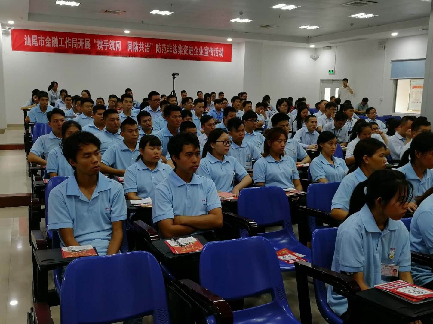 为深入开展防范非法集资和扫黑除恶宣传活动,5月23日,汕尾市金融工作局到信利集团公司培训学院开展“携手筑网▪ 同防共治”防范非法集资暨扫黑除恶进企业宣传活动。