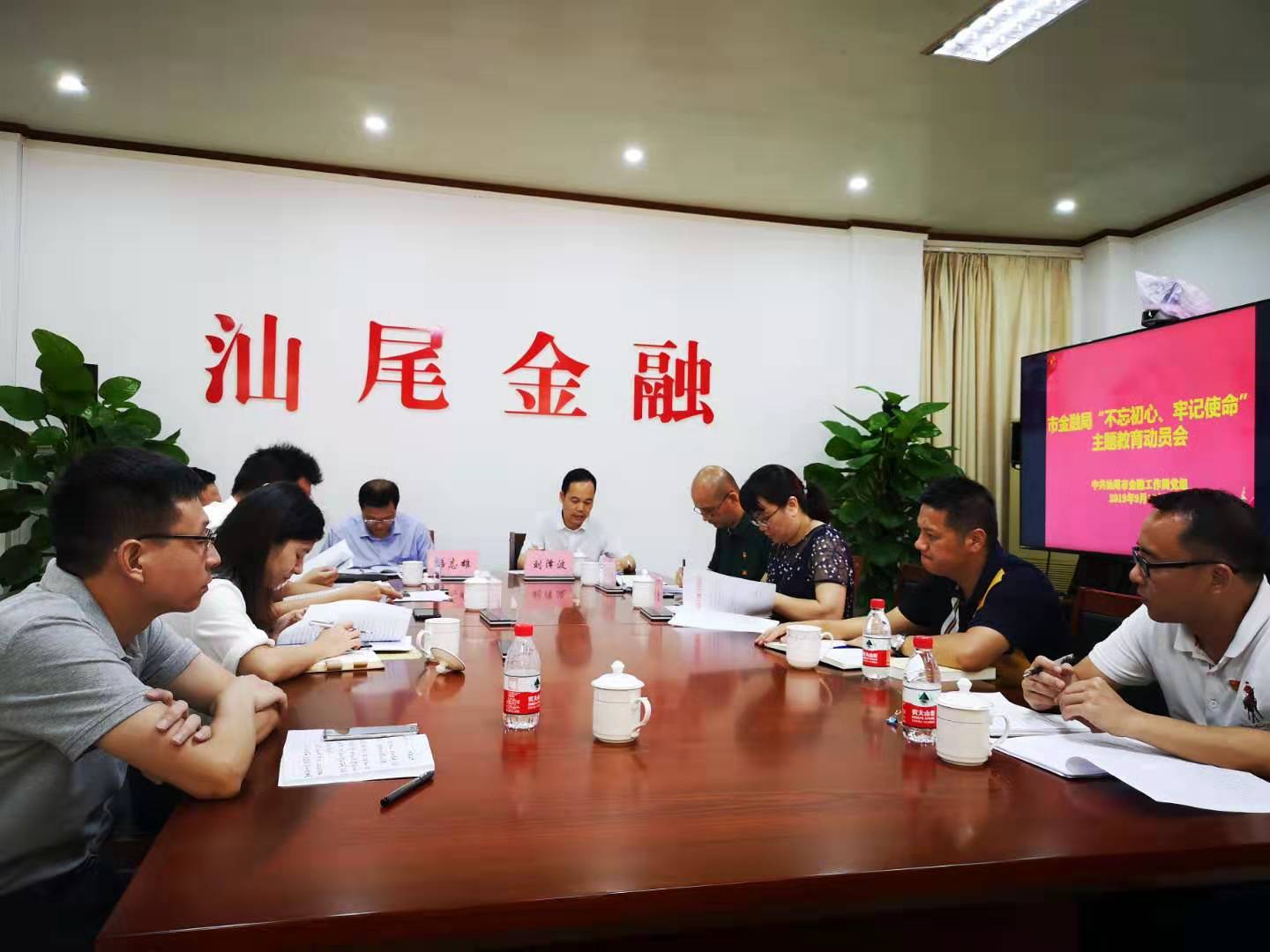 汕尾市委主题教育第八指导组全体成员、汕尾市金融工作局全体干部职工参加会议。