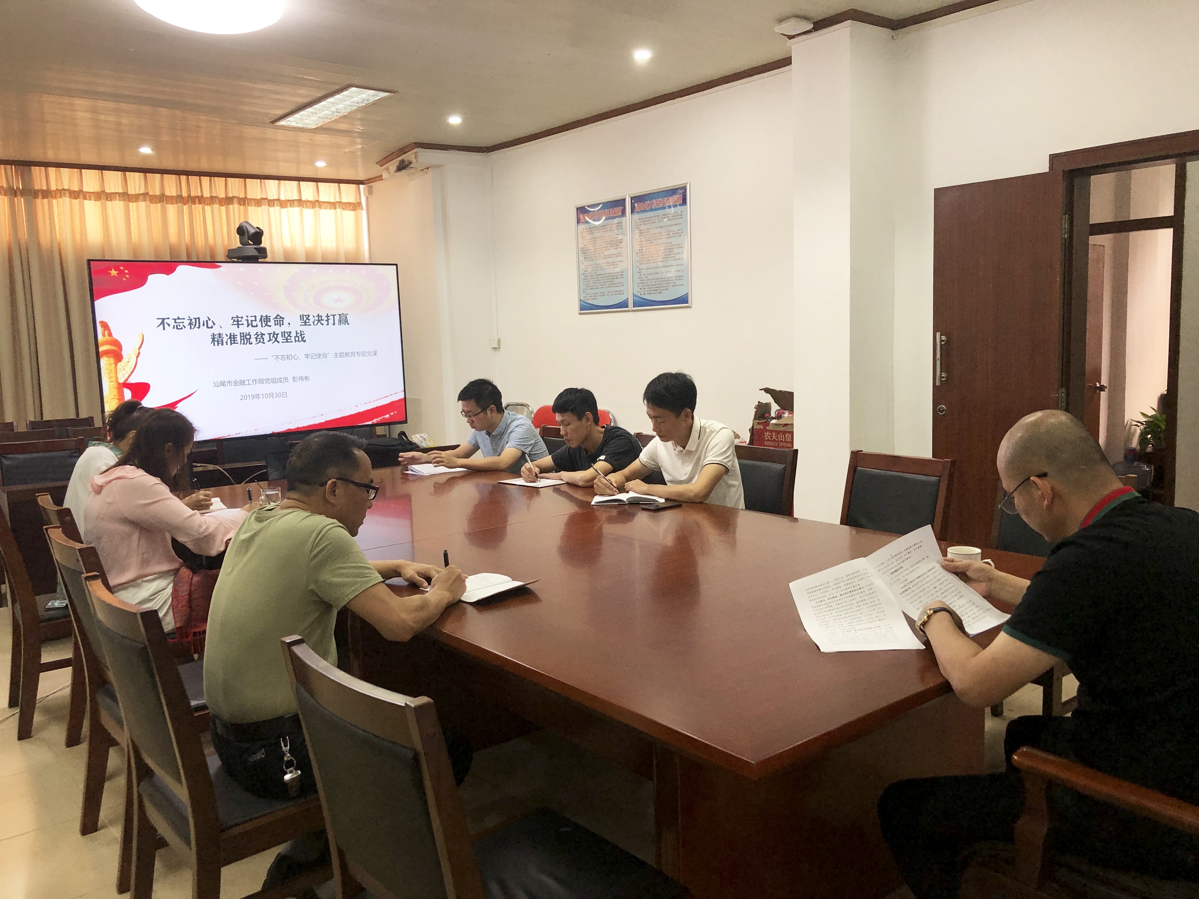 2019年10月30日,根据汕尾市委“不忘初心、牢记使命”主题教育要求和局主题教安排,汕尾市金融工作局在局会议室举办“不忘初心、牢记使命”主题教育专题党课,局党组成员彭伟彬给分管科室党员干部作题为“不忘初心、牢记使命,坚决打赢精准脱贫攻坚战”的专题党课。