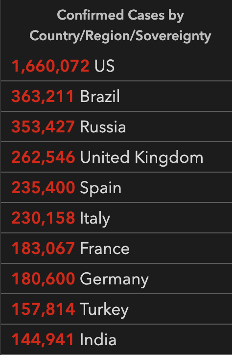 美国新冠病毒确诊超166万
