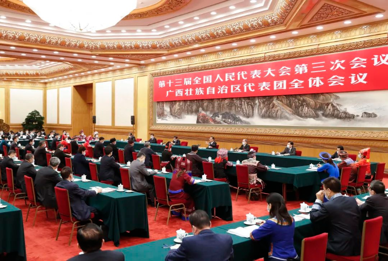 李克强5月23日上午来到十三届全国人大三次会议广西代表团参加《政府工作报告》审议。总理说,我们发展的目的就是为了改善和保障民生。反过来讲,我们发展的源泉也来自人民群众。有亿万人民群众勤劳智慧、坚韧不拔地奋斗打拼,就能不断创造社会财富,实现国家富强。此次《政府工作报告》紧扣民生,把保居民就业、保基本民生、保市场主体等“六保”放在突出位置,不论是采取多种措施助企稳岗,还是扩大失业保险和低保保障范围,都是为了兜住最基本的民生底线。这样也能支撑带动消费。消费与民生最直接相关,目前消费已在我国经济发展中起主导作用。过去我们强调,稳增长是为了保就业、保民生,现在反过来说,保住就业、保住民生就能稳增长。这是我们正在探索的一条新路子。