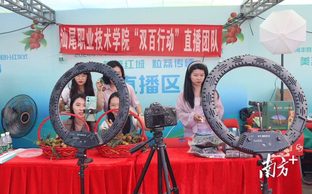 汕尾职业技术学院“双百行动”直播团队现场直播。 南方+记者 郭杨阳 拍摄