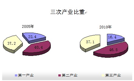 调整优化,三次产业结构由2009年的17.3:44.5:38.2调整为16.4:46.5:37.1。