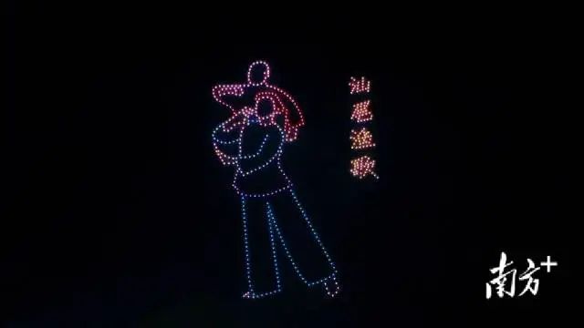 看完非遗表演还能看无人机灯光秀。海滨西沙滩公园的“星光筑梦 活力汕尾”无人机表演精彩纷呈,满满的海陆丰元素唤起家乡回忆,预计线上线下观看表演观众超10万人次。