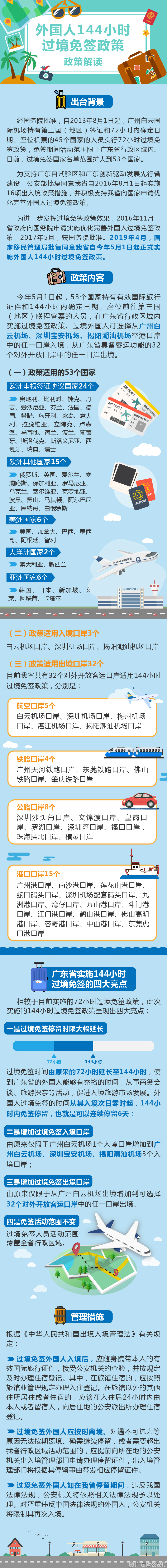 《广东省自5月1日起正式实施外国人144小时过境免签政策》