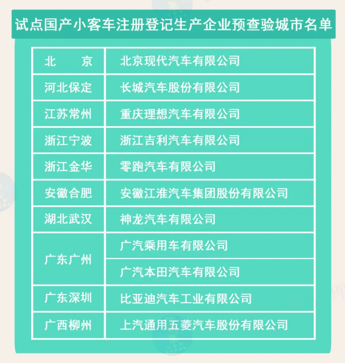 一是推行私家车新车上牌免查验。会同工业和信息化部5月底前在10个城市试点开通国产小客车注册登记生产企业预查验,实行新车出厂时查验车辆,生产企业与公安交管部门共享车辆信息,群众办理注册登记时免予交验机动车。积极推行互联网登记服务新模式,实现网上售车、网上选号、网上登记,便利群众快捷上牌,助力汽车行业发展。在试点基础上,全国逐步推行。