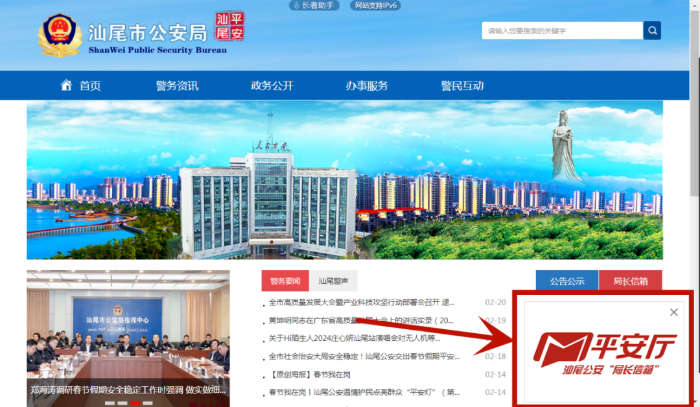 登录汕尾市公安局官方网站
