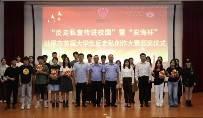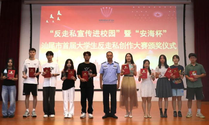 举办“反走私宣传进校园”暨“安海杯”汕尾市首届大学生反走私创作大赛颁奖活动,表彰此次创作大赛中取得优异成绩的作品,激励广大师生反走私宣传创作热情。团市委,市打私办以及相关成员单位,各县(市,区)打私办,华师大汕尾校区、汕尾职业技术学院约80多人参加了颁奖仪式。