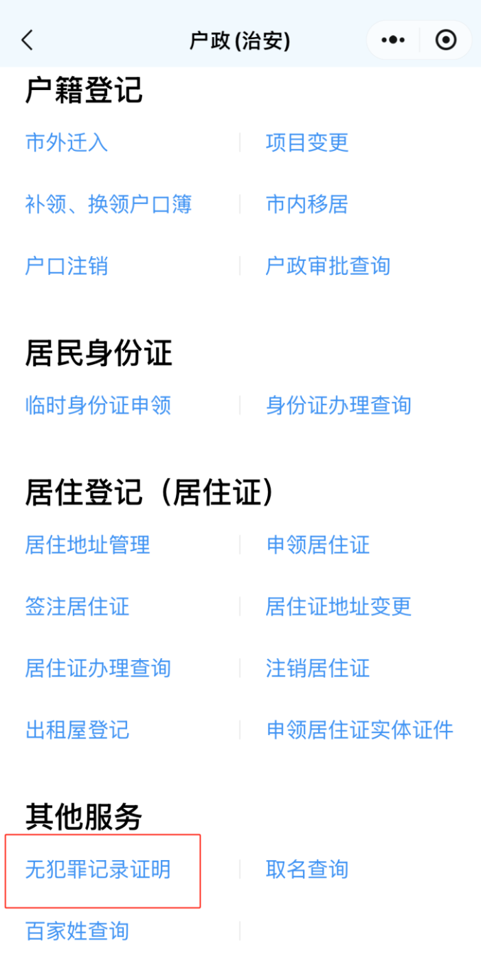 3、点击“无犯罪记录证明”