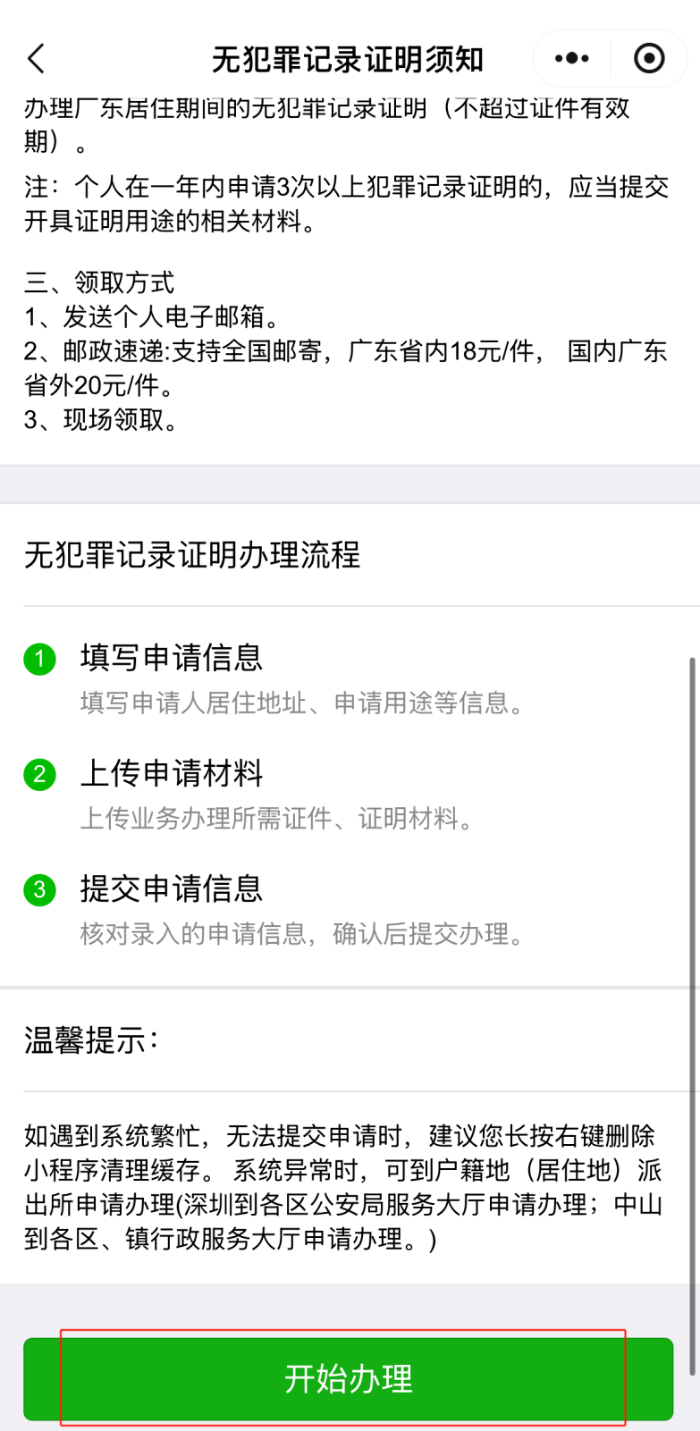 4、仔细阅读办理须知后,点击“开始办理”