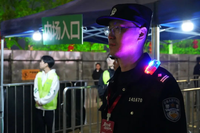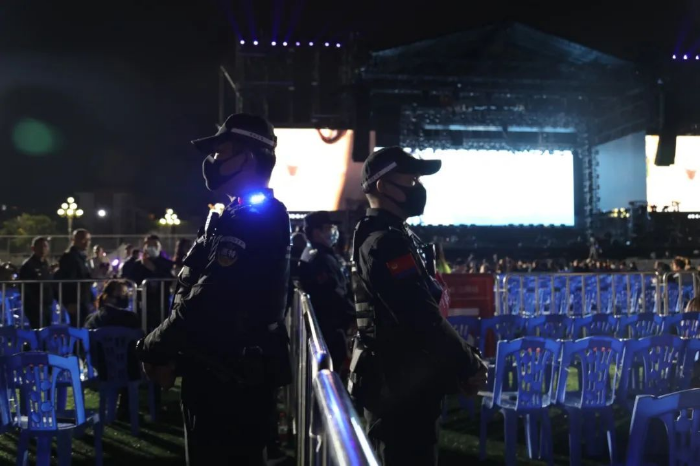 统筹规划点点线面,“定人、定岗、定时、定任务、定要求”,确保演唱会安全、有序。科学划分“初检、安检、票检”入场流程,精准部署落实分区管理,落实远端控制、分流限流、单向通行引导等管控措施,设置 11个出入口,部署警力指导保安力量精准落实安保工作,全面构建科学的安全监管体系。活动期间,全体执勤民辅警,提前到岗、严阵以待,警容严整、执法规范,始终以饱满的工作热情和良好的精神面貌,保障演唱会安全有序进行。