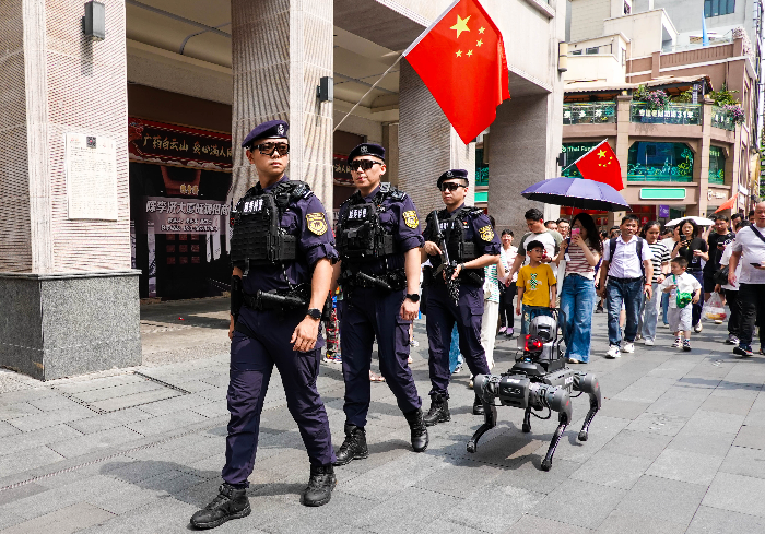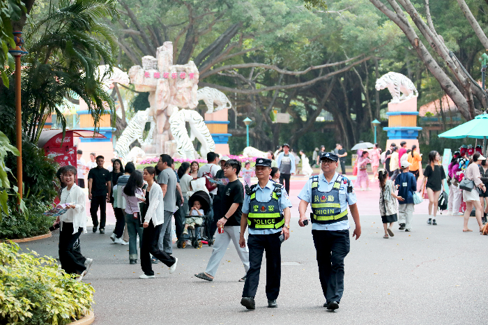 假日期间,全省各地公安机关日均部署9.6万名警力到路面一线,全面强化繁华街区、交通枢纽、旅游景区等重点部位和人员密集场所巡逻防控,着力提升见警率、管事率和震慑力。同时,持续推进打击整治行动,快打狠打假期突出违法犯罪,有力净化了社会治安环境。对大型活动和热门景区,广东公安机关严密公共安全监管,严格落实“一活动一方案”“一景区一方案”,落实落细安保措施,全省83场大型活动和241家4A级以上景区秩序良好。