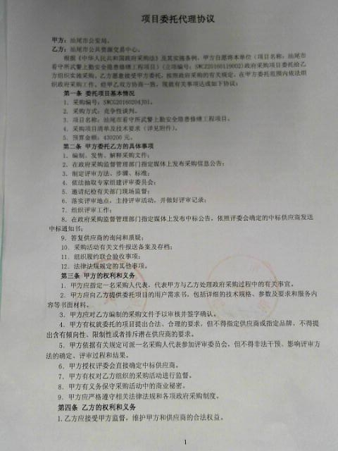 代理机构:汕尾市公共资源交易中心 项目负责人:洪广宇 项目经办人:吴志锋