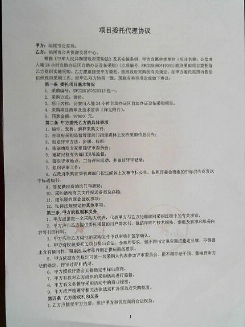 1、采购项目:公安出入境24小时自助办证区自助办证设备采购。