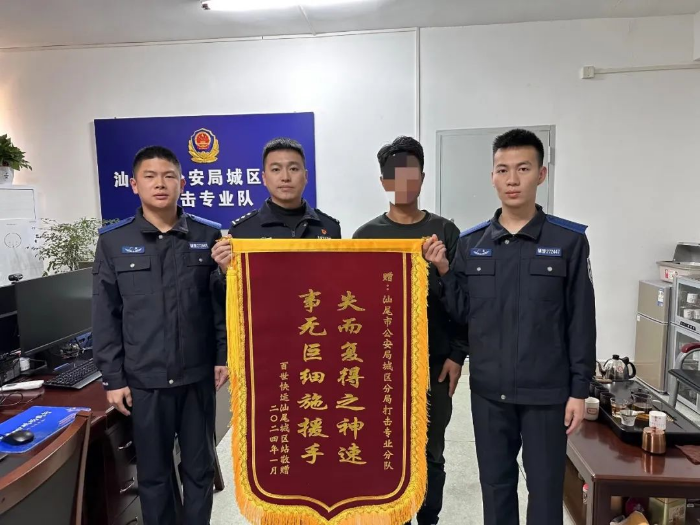 汕尾公安一天内帮快递小哥找回大件丢失快递,暖心为民获锦旗