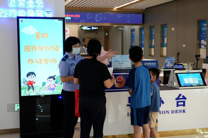 年满16周岁以上省外户籍居民,且户籍省份已开通居民身份证补换领“跨省通办”服务的,无需到窗口,可通过全市公安办证大厅及派出所投放的居民身份证自助机,快捷办理到期换证、损坏换证、丢失补领居民身份证业务。暑假期间,全市身份证自助设备办理居民身份证业务1404件次。