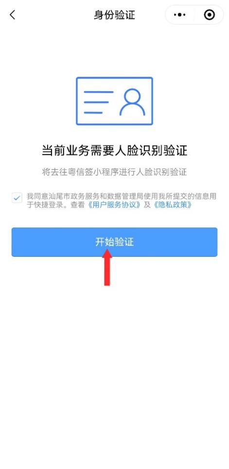 第四步:人脸识别验证。若未经过人脸识别验证,此时将提示进行人脸识别验证,请根据操作提示完成人脸识别验证。若已经过人脸识别验证,则会跳过该步骤,直接进入“办事指南”页面。