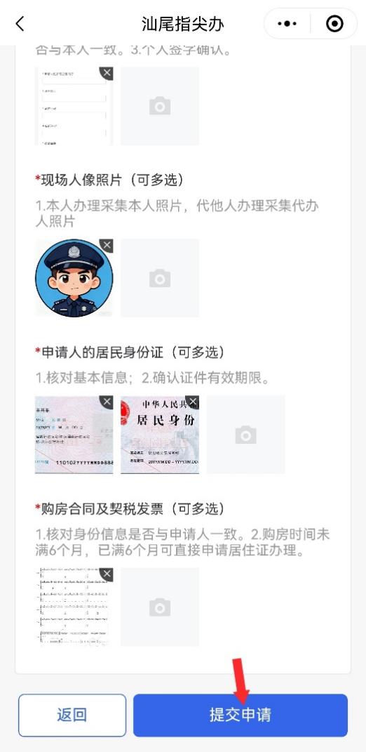 最后一步:确认所填信息,以及上传材料内容无误,点击页面底部【提交申请】后,再次确认点击【确认提交】,完成此次业务申办。
