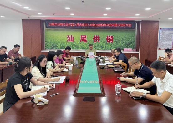 2025年6月12日下午,市供销社召开党组理论学习中心组学习会暨深入贯彻中央八项规定精神学习教育警示教育大会,深入学习贯彻习近平总书记关于加强党的作风建设的重要论述和中央八项规定及其实施细则精神,学习《党的十八大以来深入贯彻中央八项规定精神的成效和经验》《八项规定改变中国》《党政机关厉行节约反对浪费条例》精神和市委理论学习中心组(扩大)专题学习会会议精神,学习3起党员干部在学习教育期间违规吃喝、严重违反中央八项规定精神典型问题的通报精神以及《关于集中整治违规吃喝的通知》文件精神,进一步强化纪律意识,推动作风建设常态化、长效化,进一步推动学习教育走深走实。