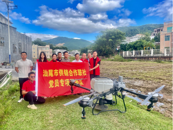 在活动现场,党员干部联合专业技术人员通过派发宣传单、咨询答疑等形式,为广大农民群众介绍供销社提供的农资农技业务服务,详细讲解了冬种紫云英的利用价值、紫云英种植技术要点以及栽培过程需要注意的问题等,专业技术人员现场进行了无人机播种作业。供销党员干部组织专业技术人员深入田间地头,服务下沉一线,为高质量做好紫云英绿肥种植项目和“社村”合作试点工作打好基础,有效帮助农户增产增收。下来,市供销社党支部将持续组织党员开展“共产党员就在你身边”活动,推动市社党员立足行业特点和岗位实际,进一步践行党的初心使命和根本宗旨,打造“红色供销 强农兴农”党建品牌,推进汕尾市农业社会化服务工作,引领小农户迈向现代农业,促进农业增效、农村发展和农民增收,让广大群众感受到共产党员就在身边,为全面推进“百千万工程”贡献供销力量。