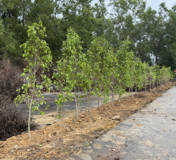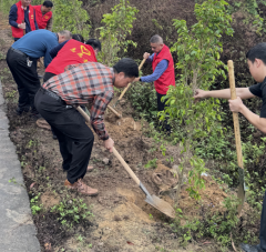 最后,全体党员前往八万村八万角开展植树活动,共栽植下树木200余棵。活动现场,党员们按照分工有序协作,挥舞铁锹,铲土填坑,每一道程序都力求精准到位,确保每一棵树苗都能茁壮成长。经过大家的共同努力,新植的树苗整齐排列、迎风而立,为八万村增添了一片盎然绿意。