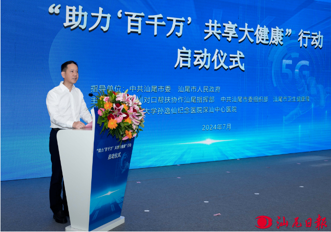 7月8日,电影天堂 “助力‘百千万’ 共享大健康”行动启动仪式在深汕中心医院举行,齐心锚定汕尾“做实做强西承东联桥头堡 全力打造东海岸重要支点”新的战略定位,携手推动大健康、并肩奋进“百千万”。市委副书记、市长郑海涛,深圳对口帮扶协作汕尾指挥部指挥长戴斌,中国科学院院士、中山大学孙逸仙纪念医院院长、深汕中心医院院长宋尔卫为活动致辞。