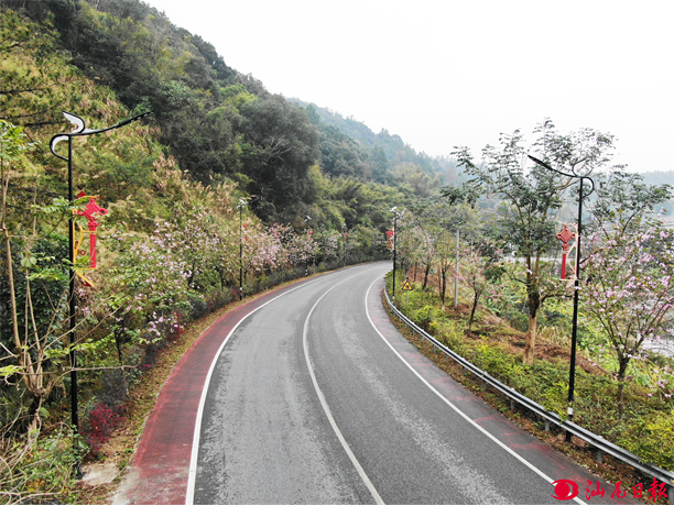 螺溪镇道路两旁的紫荆花盛开。