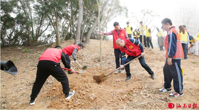在夏楼美绿美示范园党员义务植树活动现场,虽然天气微寒,但植树现场气氛热烈,党员干部热情洋溢,干劲十足,齐心协力,挥锹铲土、挖坑放苗、培土踩实……认真细致地做好每一道植树工序,现场种植了紫花风铃木、三角梅等多种优良树种。