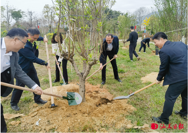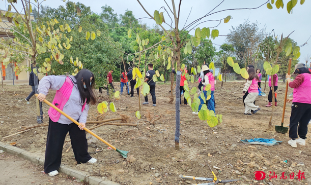 城东镇赤山村里,一场特殊的“植树接力”正在进行。活动现场,大家分工协作、相互配合,挥锹铲土、扶苗填土、提水浇灌,给树苗安新家,经过一番辛勤劳作,红花紫荆、秋枫、黄花风铃木等树种迎风而立、错落有致,成为一道道靓丽的风景线。截至目前,城东镇因地制宜打造了关东村瓦窑山生态公园“人大代表林”、河中村“青年林”、赤山村“红领巾林”“禁毒林”“青年林”“政协林”等主题林,今年来共发动干群2000多人次参与绿美建设,累计完成植树约12500株,高质量推进绿美生态建设。
