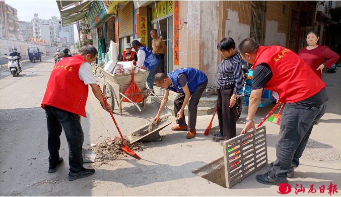 街道组织党员干部、志愿者开展环境卫生整治。