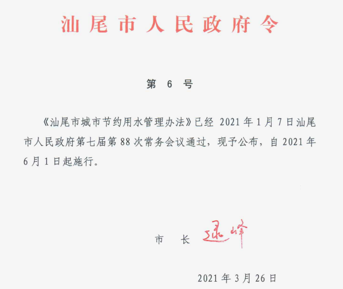 第一条 为了加强城市节约用水管理,科学、合理、高效地利用和保护水资源,建设节水型城市,促进经济社会可持续发展,根据《中华人民共和国水法》《广东省实施〈中华人民共和国水法〉办法》等法律、法规,结合本市实际,制定本办法。
