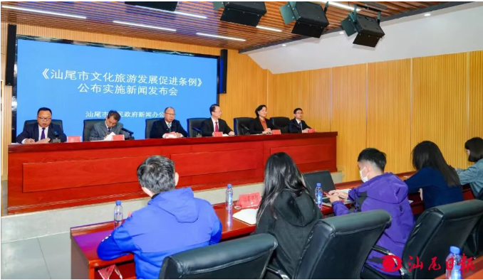 召开《汕尾市文化旅游发展促进条例》(以下简称《条例》)公布实施新闻发布会。市人大常委会法工委、市文化广电旅游体育局、市市场监督管理局、市交通运输局和市商务局相关负责人介绍有关情况及贯彻实施条例的计划安排并答记者问。