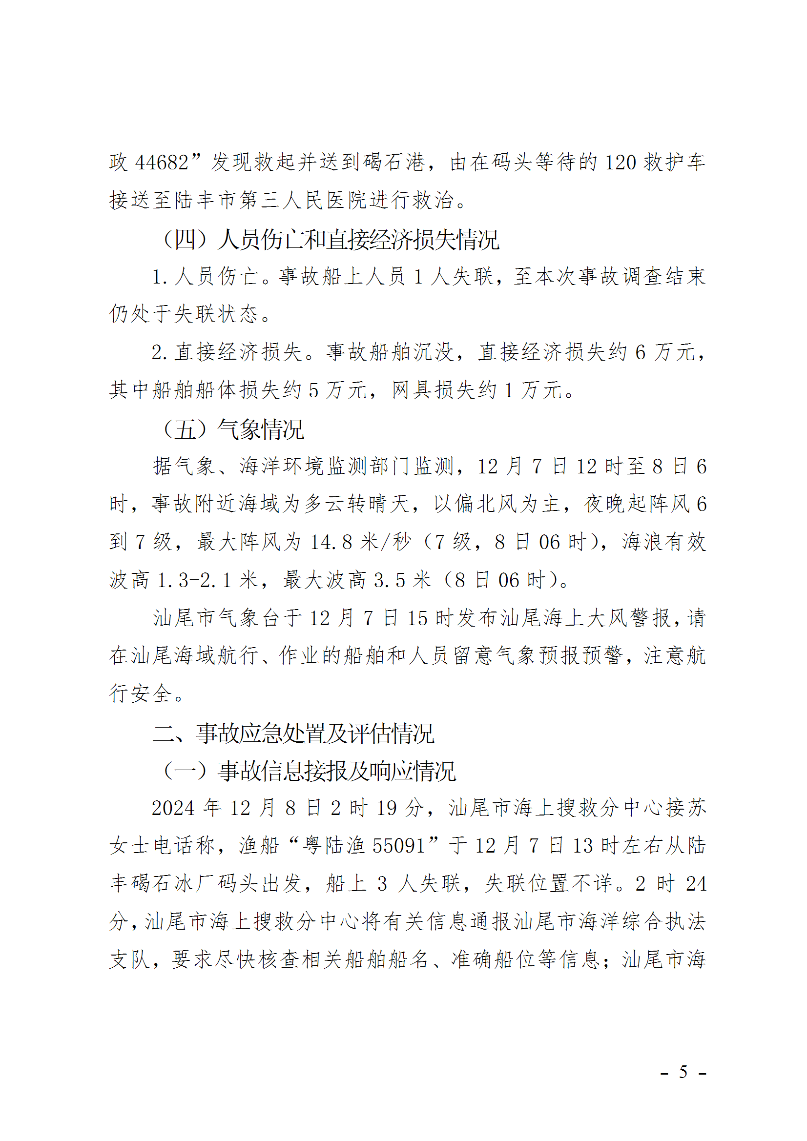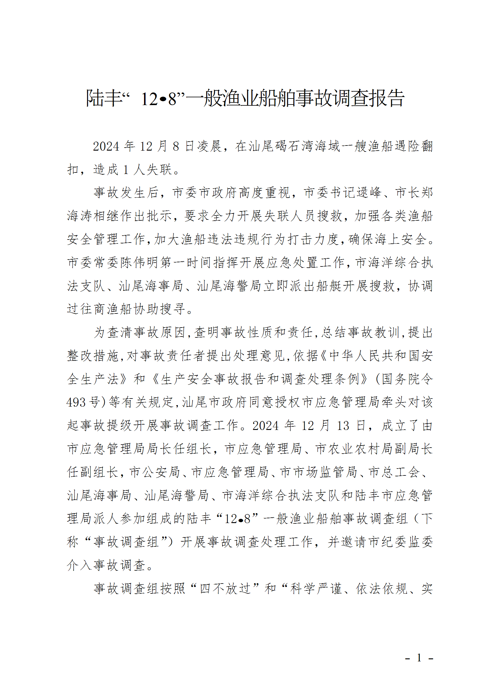 陆丰“12.8”一般渔业船舶事故调查报告