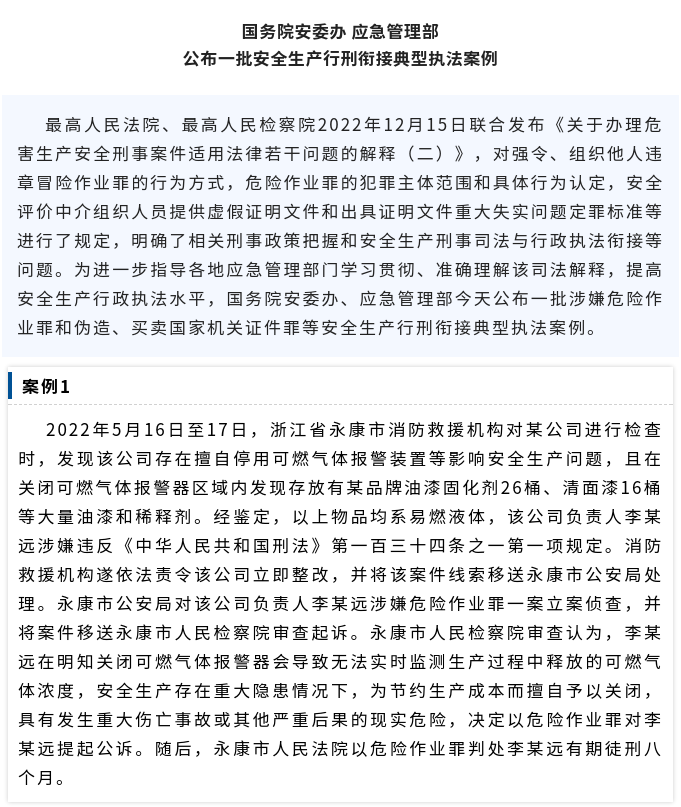 4起安全生产行刑衔接典型执法案例