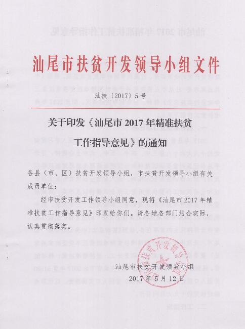 汕扶[2017]5号(关于印发《汕尾市2017年精准扶贫工作指导意见》)