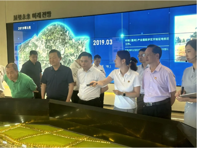 为深化校企合作融合度,依托行业产业优势,建立校企深度合作、紧密结合,优势互补、共同发展的联合办学机制,大力推进校企合作人才培养模式,进一步强化人才培养服务地方经济发展,开创校企合作的新局面。8月14日下午,学校党委书记林来平带队一行5人赴中韩(惠州)工业园进行考察,中韩(惠州)工业园智营公司总经理黄文韬、副总经理罗健、中韩(惠州)工业园基地董事杨梅、教务部项目总监魏晶、实践部项目总监费冬、训部项目总监吴恒培、学生管理部总监陶利娜等陪同。