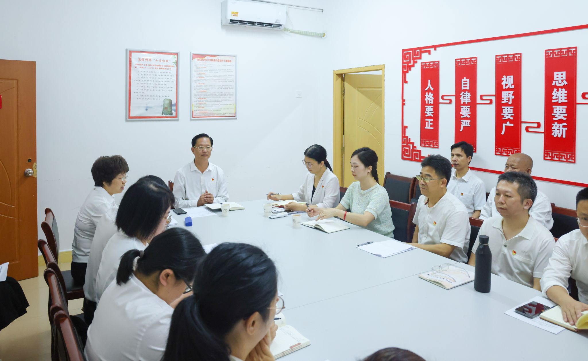 为深入贯彻落实习近平总书记对学校思政课建设作出的重要指示精神,对标《普通高等学校马克思主义学院建设标准》(2023年版)要求,加快推进学校马克思主义学院内涵式发展,6月18日下午,学校党委书记林来平深入马克思主义学院召开学院建设现场会。学校相关职能部门负责人及马克思主义学院全体思政课教师参加会议。