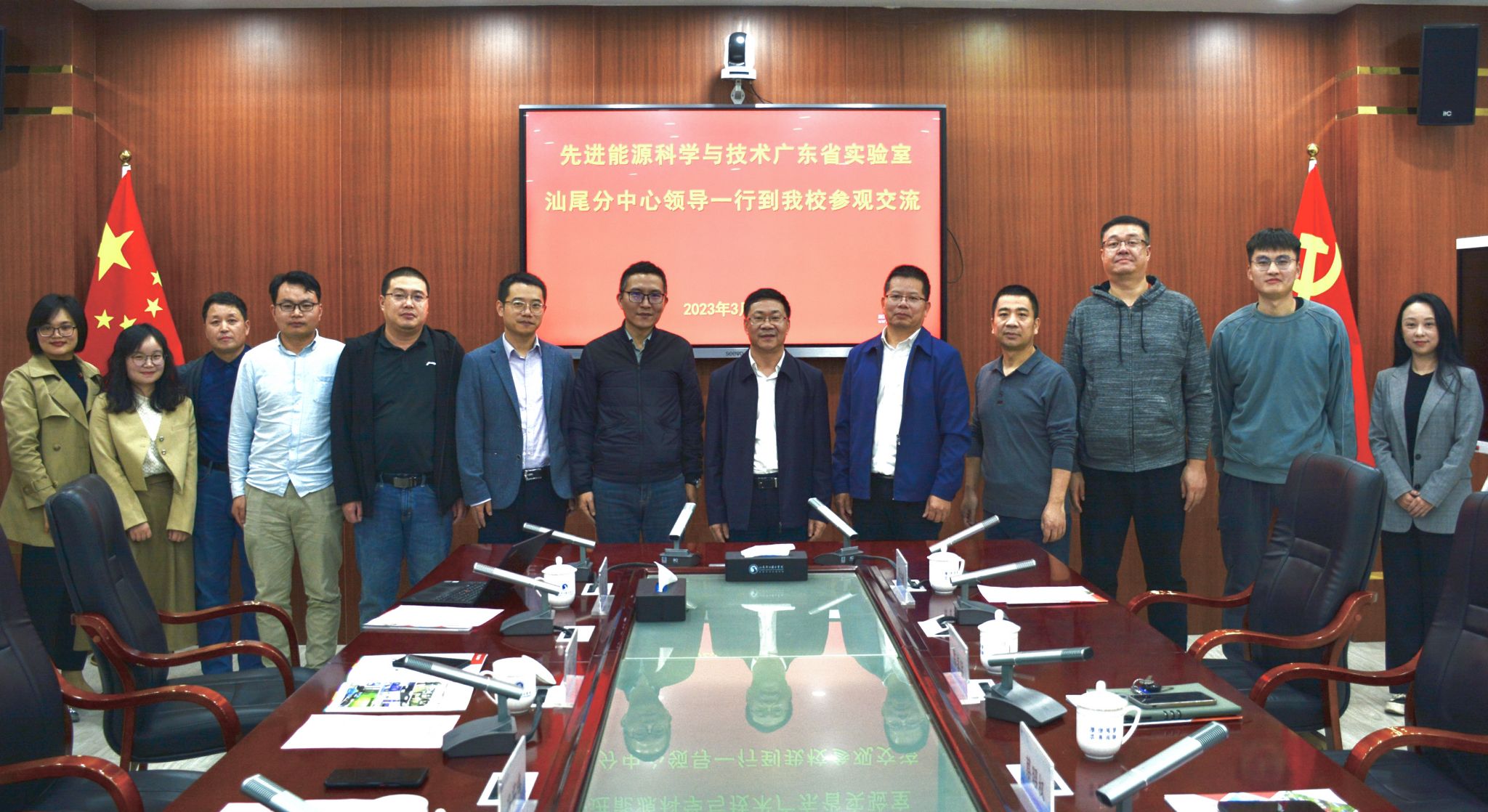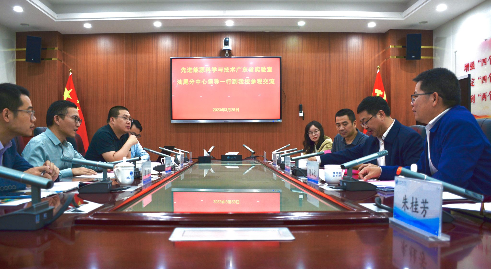 3月28日下午,先进能源科学与技术广东省实验室汕尾分中心冯茹鸣常务副主任一行4人到我校参观交流,我校校长蔡昭权热情接待来访客人,并在科学楼三楼会议室举行座谈交流。教务处、科研处、海洋学院相关负责人,海洋学院相关教师参加座谈会。